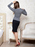 элегантный трикотажный жакет с рисунком "горошек" с втачным поясом , отделкой по горловине и рукавам тканью-компоньоном. Без подкладки, застегивается на одну декоративную пуговицу.