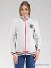 Практичная кофта согреет Вас в холодные дни. Модель с длинными рукавами, воротником-стойкой и застежкой на молнию. Оформлена рисунком в полоску и нашивкой.