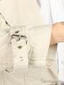 Детали: застежка на металлических декоративных запонках, внутри вшитый пояс, накладные карманы с листочками, рукав длинный двухкроеный сжимается у запястья ремешком на шлевках.