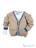 Замечательному вязаному жакету из мягкого хлопка найдется достойное применение и весной, и летом. Кроме бесспорных функциональных качеств, он выглядит очень стильно и привлекательно благодаря контрастному сочетанию деталей, выполненных из двух цветов пряжи. Украшают изделие пуговицы с фирменной символикой.