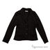 Приталенная модель застегивается на три пуговицы. Фигурные вытачки.