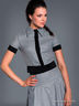 Стильный укороченный жакет дополнит Ваш женственный образ. Модель с короткими рукавами и отложным воротником. Спереди - застежка на пуговицы.