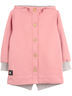 Жакет из толстого футера с начесом. Рукава на манжетах из кашкорсе, в боковых швах карманы. Спинка удлиненная. Капюшон на подкладке. По переду застежка на пуговицы.