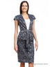 Жакет летний, средней длины, приталенный. V-образный глубокий вырез от горловины, по всей длине лифа до талии. Воротник оформлен лацканами. Застежка на длинный пояс-кушак в талии. Рукав по типу кимоно короткий, втачной, прямой.