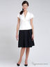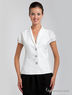 Жакет прилегающего силуэта до середины бедра. С коротким рукавом и защипами по низу рукава. Английский воротник.