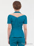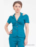 Жакет прилегающего силуэта до середины бедра. С коротким рукавом и защипами по низу рукава. Английский воротник.