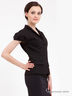 Жакет прилегающего силуэта до середины бедра, с коротким рукавом и защипами по низу рукава. Английский воротник.