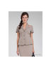 Оригинальный жакет приталенного силуэта. Выполнен из приятного на ощупь материала. Отложной воротник с лацканами. Короткие рукава. Спереди застегивается на пуговицы. Верхняя часть и спинка имеют стильный необычный разрез. Прекрасно сочетается с любыми по стилю и фасону вещами!