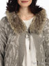 Детали: декорирован оригинальным принтом; ворот выполнен из меха енота, мех отстегивается; завязывается на тонкие ленты; округлый крой низа