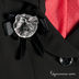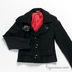Приталенная модель застегивается на три крупные пуговицы. Имитация передних карманов. Фигурные вытачки. Лацкан украшен логотипом из страз. Спинка немного присборена.