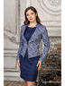 Элегантный жакет из роскошного жаккарда, на подкладе. Приталенный силуэт. Воротник-стойка с фигурным вырезом, контрастная отделка по борту. Застёгивается на пуговицу, в тон отделке. Втачной рукав, длиной 58 см. Длина по спинке 53-57 см в зависимости от размера.