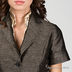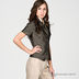 Жакет из гладкой ткани. Отложной воротник с лацканами, короткие рукава, застегивается на пуговицы.