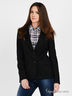 Практичный жакет приталенного силуэта из плотной полушерстяной ткани. Отложной ворот с лацканами. Застегивается на пуговицы. Рельефные вытачки. Два передних втачных кармана с клапанами.