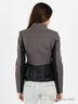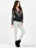 Стильный приталенный жакет. По низу талии идет в два ряда легкий волан из кожаной ткани. Также есть вставка из кожи спереди, по бокам и по внутренней стороне рукава. Отложной воротник с лацканами. Застежка на молнию. Будьте в центре внимания каждый день!