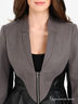 Стильный приталенный жакет. По низу талии идет в два ряда легкий волан из кожаной ткани. Также есть вставка из кожи спереди, по бокам и по внутренней стороне рукава. Отложной воротник с лацканами. Застежка на молнию. Будьте в центре внимания каждый день!