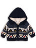 Жакет для мальчика с капюшоном, с длинными рукавами и застежкой на пуговицы.
