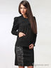 Стильный женский жакет черного цвета, воротник стойка, застежка на пуговицы, спереди накладные карманы.