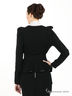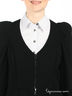Элегантный жакет черного цвета. Глубокая круглая горловина прекрасно подчеркивает шею. Застегивается на молнию. Длинные рукава с небольшими буфами. Широкий пояс подчеркивает талия и создает иллюзию баски - столь модной в этом сезоне.