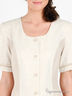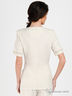 Детали: круглый вырез, короткие рукава с манжетами, застегивается на пуговицы, спереди перфорированные вставки и 2 накладных кармана