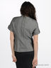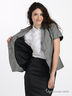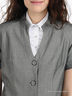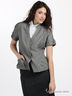 Детали: жакет на подкладке, ворот стойка на V-образном вырезе, рукав короткий завернут под хлястик на пуговице, застежка на пуговицах, два врезных кармана слегка присборены.