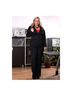 Детали: отложной воротник с лацканами, длинные рукава украшены атласной вставкой с пуговицей, спереди застегивается на пуговицу, украшен декоративной прострочкой