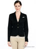 Детали: отложной воротник, переходящий в планку изделия, застежка на две пуговицы, три кармана, длинный прямой рукав с тремя пуговицами, мягкие плечики