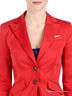 Детали: отложной воротник, переходящий в планку изделия, застежка на две пуговицы, три кармана, длинный прямой рукав с тремя пуговицами, мягкие плечики