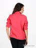 Стильный жакет оригинального дизайнерского кроя из льняной тонкой, дышащей ткани. Застегивается на крючок. Отложной воротник. V-образный вырез горловины. Длинный прямой рукав. Оригинальный крой низа.