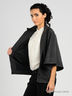 Стильный жакет с цельнокроеным рукавом "летучая мышь" из плотной шерстяной ткани подойдет как ля офисного стиля, так и для отдыха. Застегивается на пуговицы. Ворот-стоечка. Низ изделия дополнен декоративными защипами. Тонкая шелковистая подкладка.