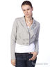 Детали: отложной воротник с лацканами, застежка двубортная на пуговицах, длинные рукава, небольшая сборка на спинке.