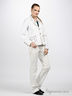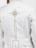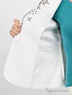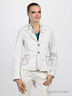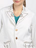 Стильный жакет из натурального хлопка, приталенного силуэта подойдет как для офисного стиля, так и для повседневной носки. Застегивается на пуговицы. Отложной воротник, переходящий в планку декорирован металлическими клепками с бирюзой. Длинный прямой рукав с тремя пуговицами. Два накладных кармана декорированы металлическими клепками с бирюзой. Один врезной кармашек.