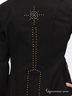 Стильный жакет из натурального хлопка, приталенного силуэта подойдет как для офисного стиля, так и для повседневной носки. Застегивается на пуговицы. Отложной воротник, переходящий в планку декорирован металлическими клепками с бирюзой. Длинный прямой рукав с тремя пуговицами. Два накладных кармана декорированы металлическими клепками с бирюзой. Один врезной кармашек.
