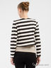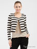 Жакет с длинными рукавами и округлым вырезом горловины. Спереди модель дополнена застежкой на пуговицу. Модель укороченного покроя имеет яркую расцветку в полоску. Отличный вариант на каждый день.