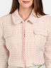 Детали: отложной воротник, укороченные рукава, застегивается на крючок, спереди 2 накладных кармана
