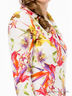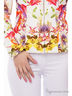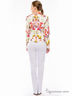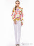 Великолепный жакет с отложным воротником и длинными рукавами. Модель дополнена застежкой на пуговицы. Приталенный крой. Изделие декорировано ярким рисунком.