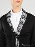 Элегантный жакет с изысканным кружевом отлично подойдет как к офисному стилю, так и к вечернему наряду. Тонкая низкоэластичная ткань. Приталенный силуэт. Завязывается спереди на ленты. Длинный прямой рукав декорирован гипюровым кружевом.