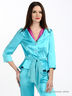 Детали: отложной воротник, застежка на пуговицы, отрезной низ изделия выполнен в виде баски, пояс дополне шифоновым поясом, рукав 3/4 с небольшим разрезом