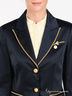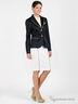 Детали: V-образный вырез горловины, длинные рукава, отложной воротник лацканами, застежка на пуговицы, два прорезных кармашка