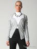 Стильный трикотажный кардиган. Длинный рукав. Очень глубокий вырез. Застежка на пуговицы. Окантовка ворота, манжеты и низ изделия выполнены в виде трикотажной резинки в мелкий рубчик.
