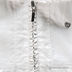 Модель прямого кроя застегивается на молнию. Капюшон пристегивается на кнопки. Два боковых кармана, два внутренних кармана на липучке. Края изделия украшена рюшами.