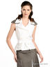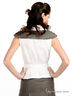 Детали: отложной ворот с лацканами, застежка на пуговицы, декоративная отстрочка под ручной стежок, в шлевки вставлен поясок, контрастные вставки