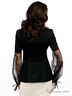 Детали: отложной ворот, вытачки, застежка на пуговицы, оригинальный кружевной рукав с завязками