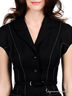 Детали: отложной ворот с лацканами, короткий рукав, застежка на пуговицы, два передних кармана, пришиты шлевки, вставлен поясок, контрастная прострочка