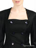 Фрак-жакет из английской чёрной шерсти с деликатным блеском и ненавязчивой полоской. Рукав длинный, застежка на пуговицах, подкладка отлетная.
