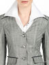 Жакет приталенного силуэта с V-образным вырезом и декоративной бархатной отделкой. Застегивается на три перламутровые пуговицы. Рукав длинный с разрезом на манжетах. Отлетная подкладка.