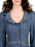 Детали: отложной ворот, вытачки, застежка на пуговицы, два передних кармана, изделие украшено кружевами