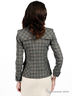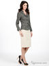 Приталенный жакет в клетку на пуговицах с отложным воротом и длинным рукавом.