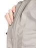 Детали: ворот-стойка декорирован хлястиком, продетым в шлевки, застежка на молнию и на планку с кнопками, два кармана на молнии, длинный прямой рукав дополнен с внутренней стороны трикотажной вставкой