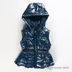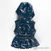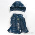 Приталенная утепленная модель застегивается на молнию по всей длине изделия. Капюшон пристегивается на кнопках. В верхний край капюшона вшита резинка. Высокий ворот-стойка. Два боковых кармана. В пояс вшита широкая резинка. Полочка декорирована атласными бантиками и металлическим элементом, края изделия украшена рюшами. На подкладке крупный декоративный принт с блестками.