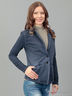 Жакет с длинными рукавами и отложным воротником. Модель приталенного кроя дополнена спереди застежкой на пуговицы. Отличный вариант на каждый день.